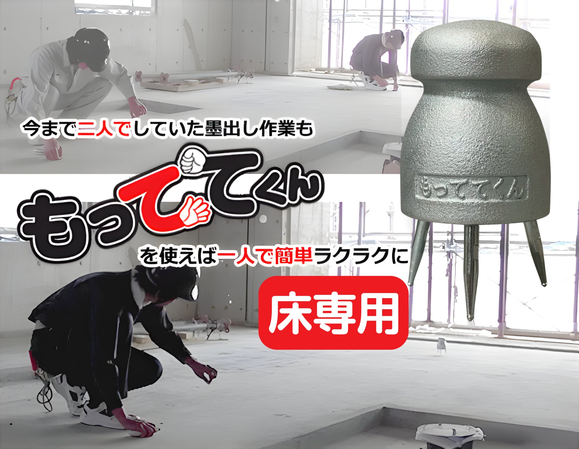 床専用の墨出し器具「もっててくん」です。